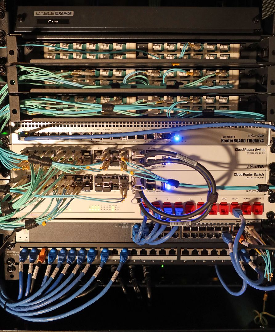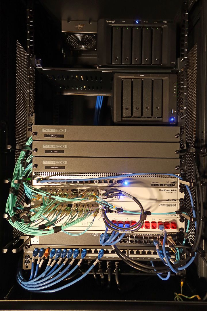 Next, we mounted all of the gear for our upgraded core network in the Rack. The main components include (from bottom to top):